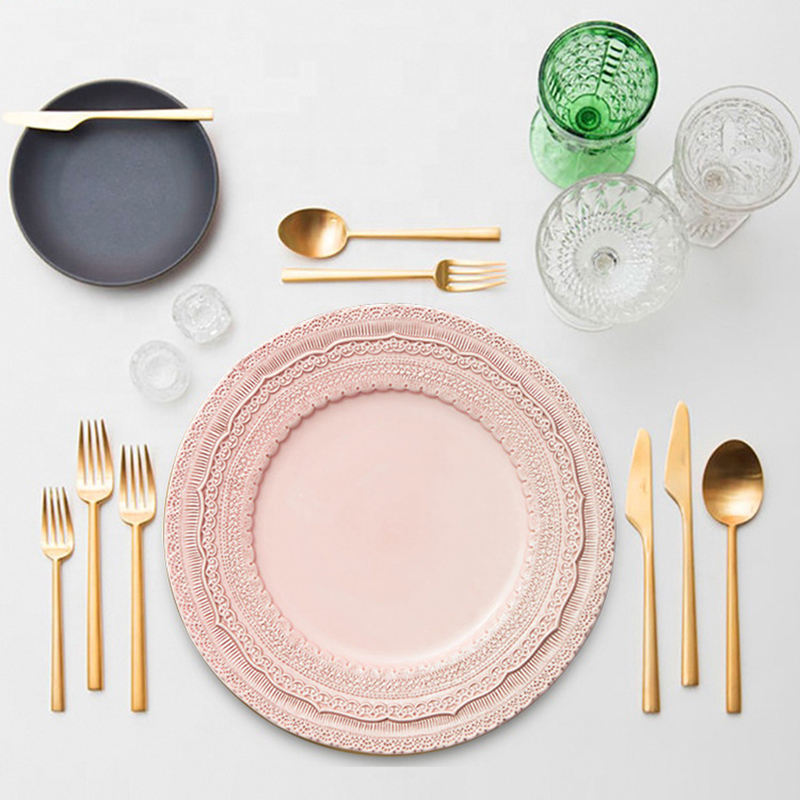 Juego de platos de cena de boda de cerámica en relieve vintage de 13 pulgadas con personalización al por mayor