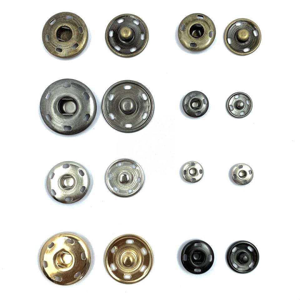 Venta al por mayor Personalización Precio barato 2 piezas Invisible Acero inoxidable Metal Coser Oculto Prensa Botón a presión Malla Decoración Chapado