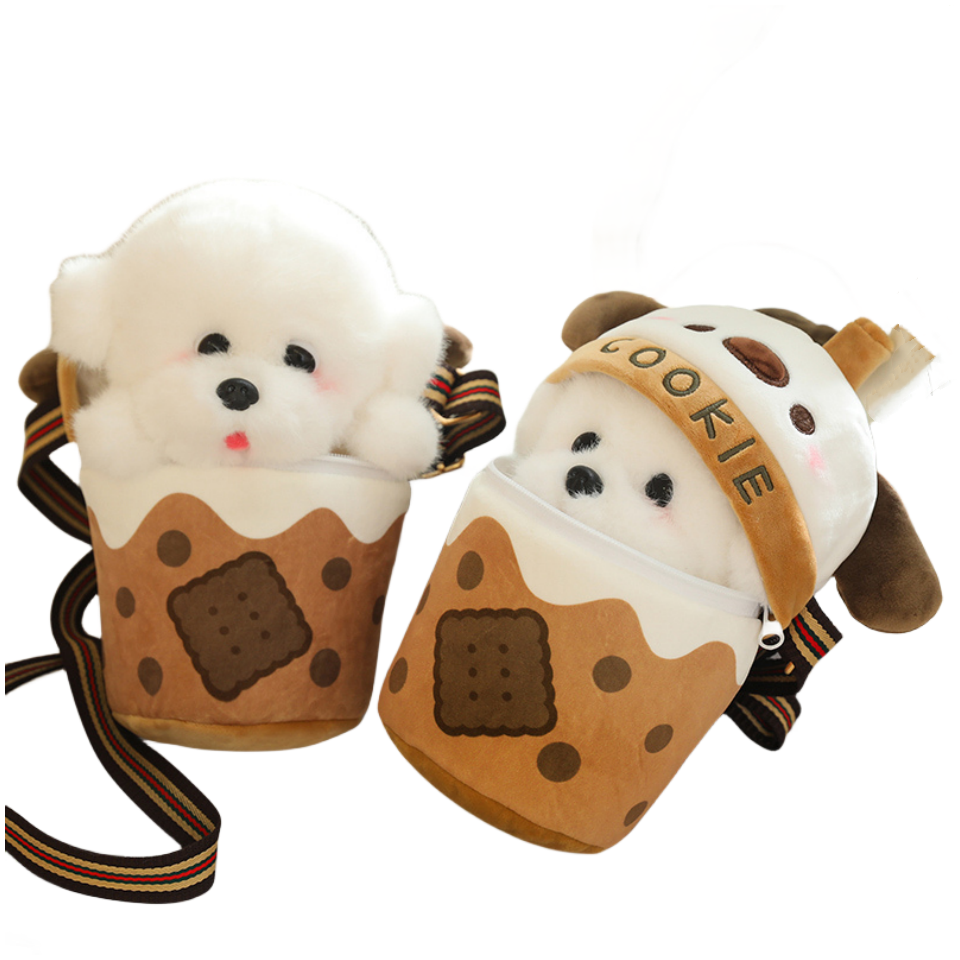 Juguete de Peluche Personalizado al por Mayor, Taza de Té con Leche para Niños, Animal de Peluche con Forma de Perro, Relleno de Algodón PP Ecológico para Niños