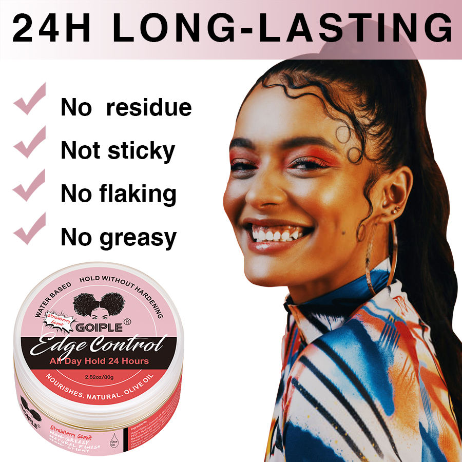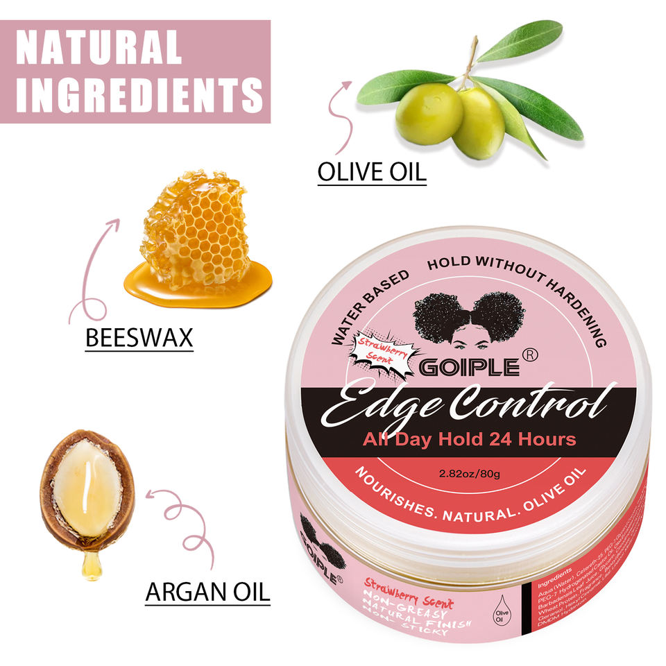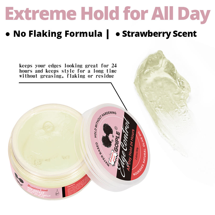 Venta al por mayor personalizado 80g orgánico control de bordes aroma de fresa fuerte Fijación de cera para el cabello gel estilo pomada anti-encrespamiento control de bordes