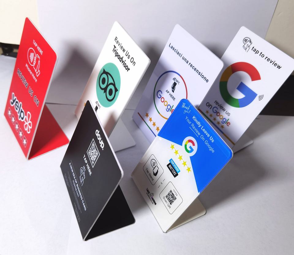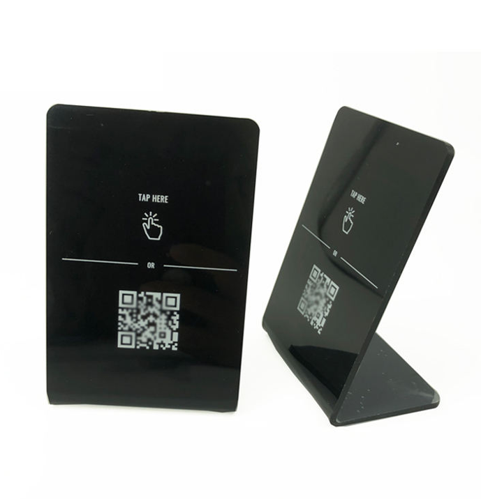 Etiquetas de Menú Acrílicas NFC RFID Personalizadas al por Mayor con Soporte de Exhibición Escaneable con Código QR para Redes Sociales