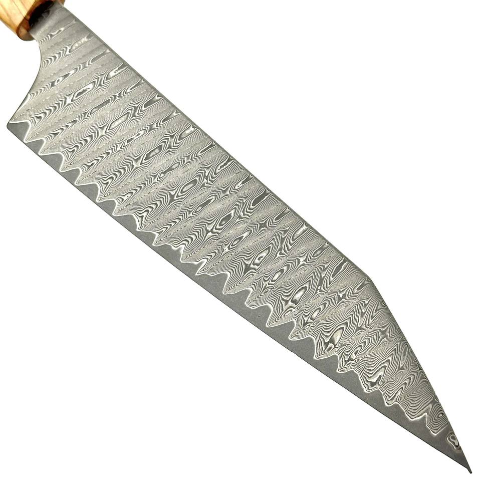 Venta al por mayor pedidos a granel personalizados OEM ODM servicio profesional hecho a mano de acero damasco cuchillo de cocina con mango de madera de olivo
