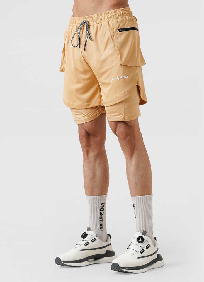 Pantalones cortos Cargo para correr personalizados de color al por mayor, transpirables de secado rápido, pantalones cortos geniales para gimnasio de doble capa para hombres