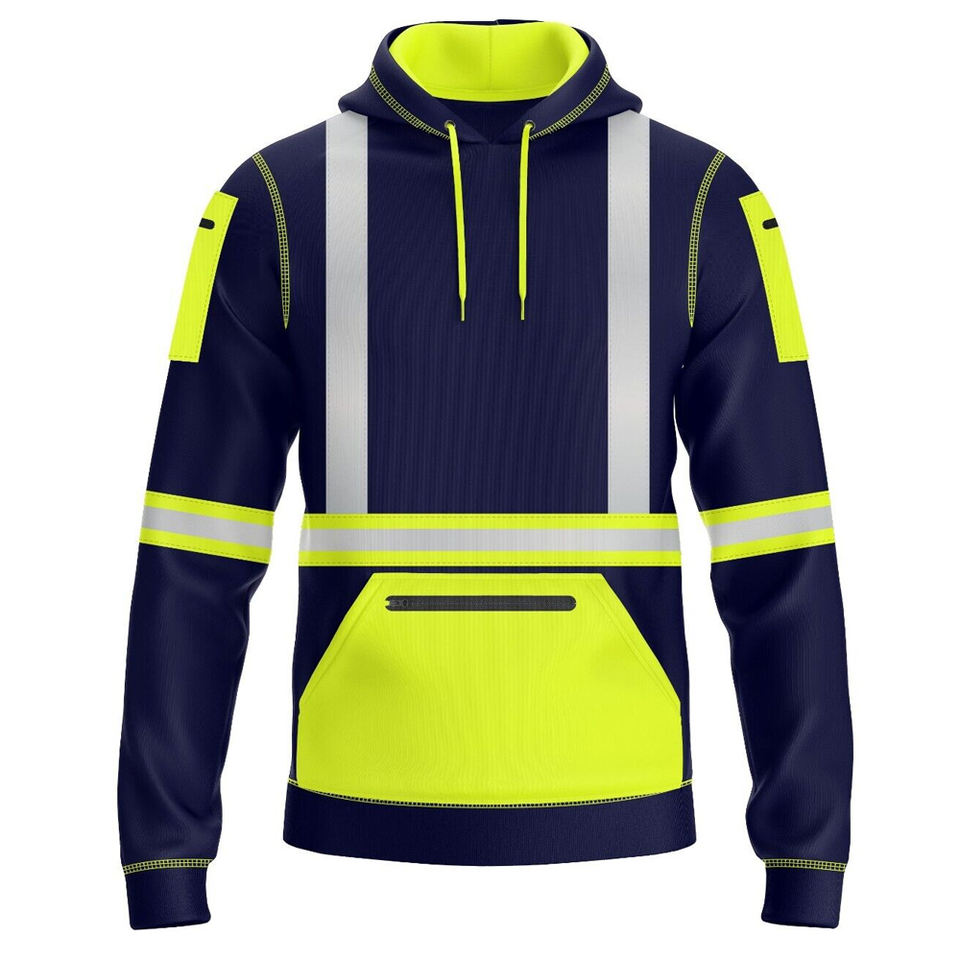 Venta al por mayor de color personalizado frente de alta visibilidad de construcción de ropa de trabajo de los hombres con capucha transpirable precio barato de alta calidad de los hombres de capucha