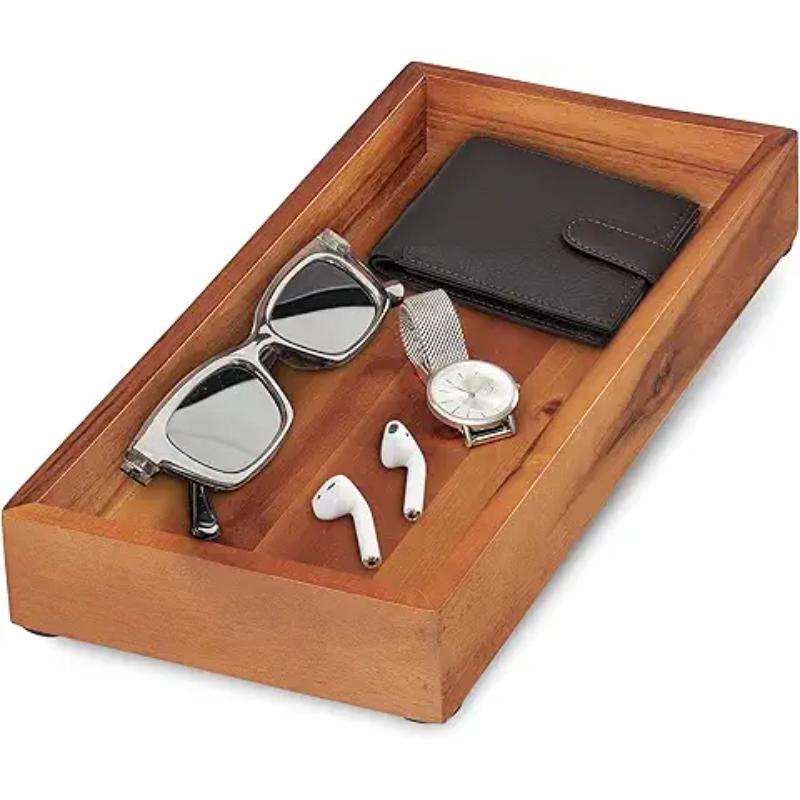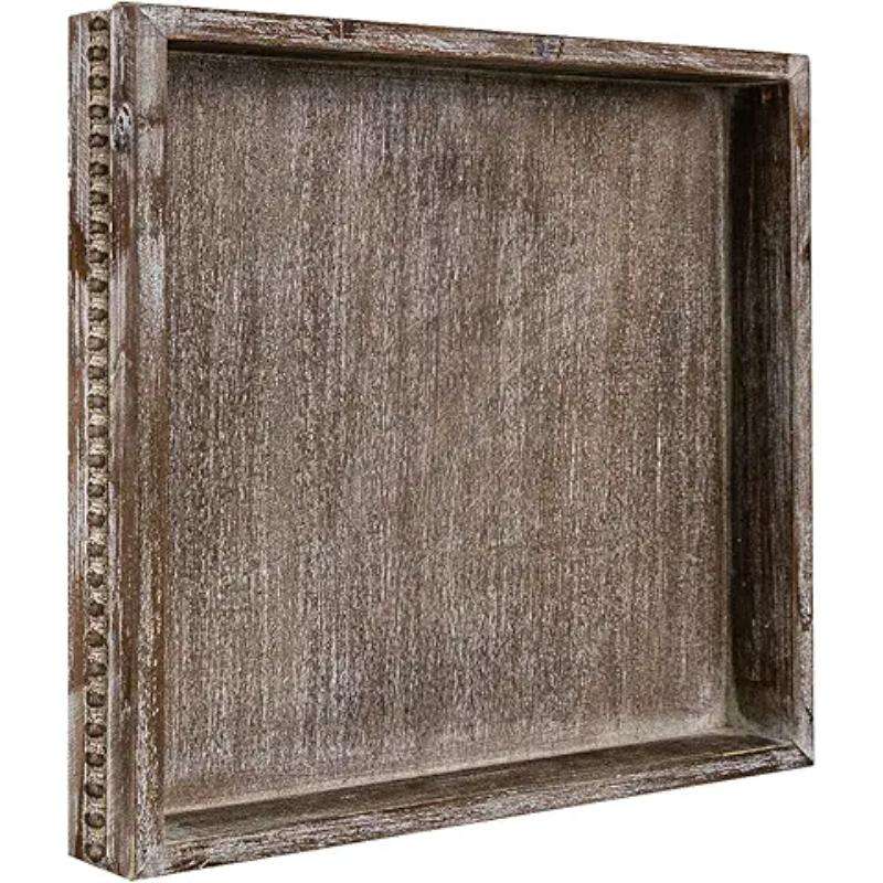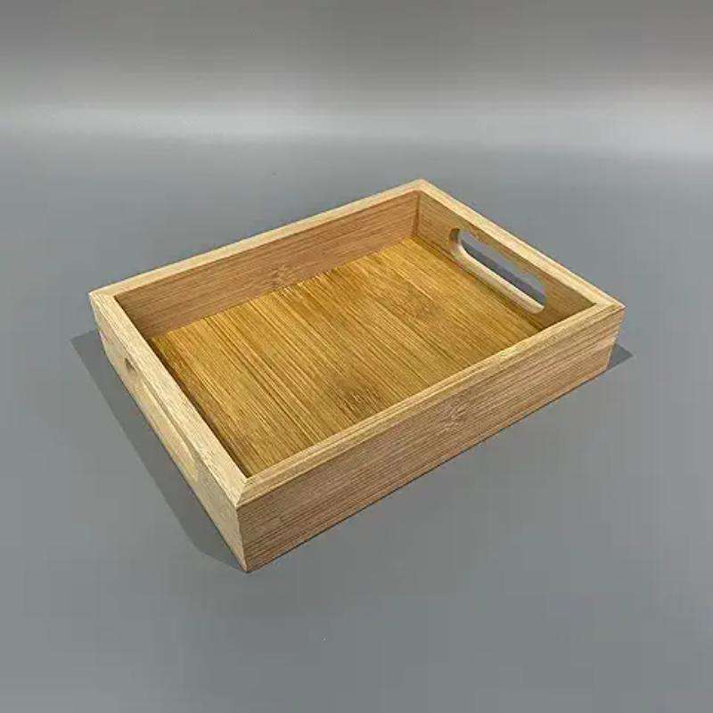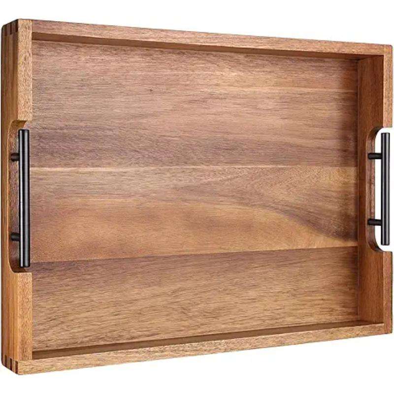 Venta al por mayor de diseño personalizado impreso en forma de rectángulo bandeja de madera de mango hecha a mano con estilo vintage por fabricante
