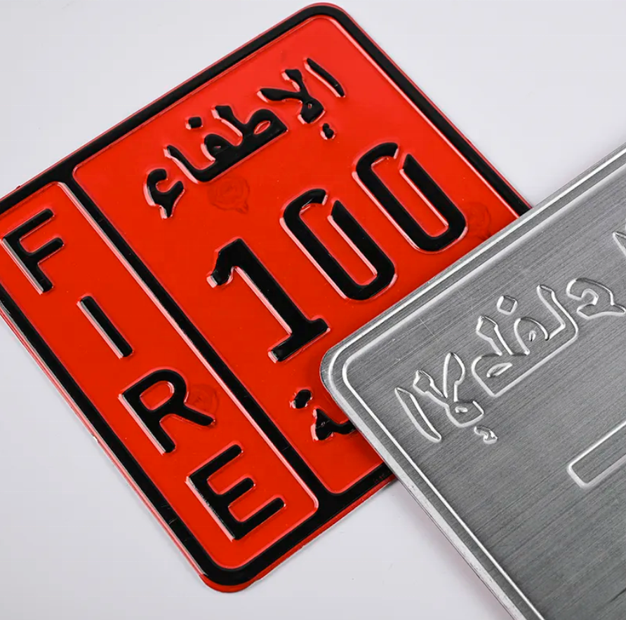 Placa de Matrícula de Aluminio Grabada Personalizada al por Mayor, 1 mm de Grosor, Acabado Texturizado, Impresión UV, Marca XY, Modelo CP-01, Muestra Gratuita