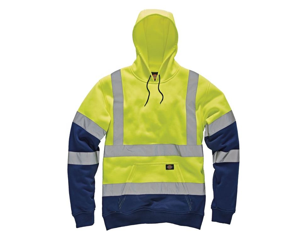 Venta al por mayor personalizado fluorescente amarillo dos tonos reflectante seguridad suéter con capucha para hombre Hi Vis sudaderas con capucha