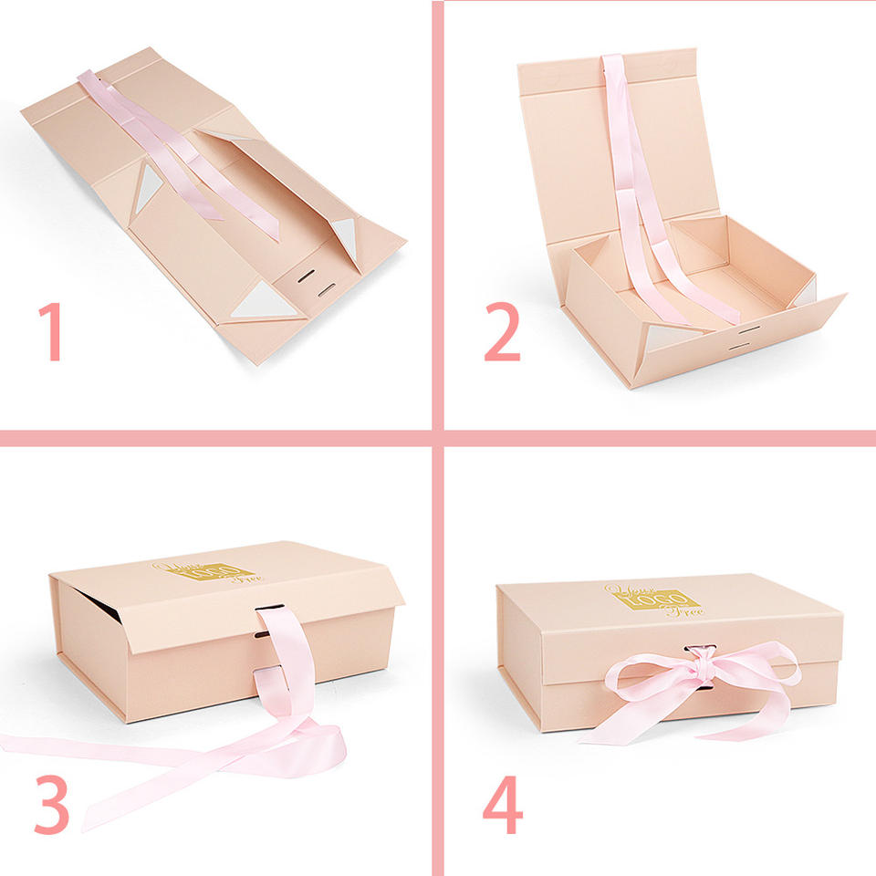 Cajas de Regalo de lujo para ropa y pelucas, caja de papel de cartón con cierre de lazo magnético plegable personalizado, venta al por mayor