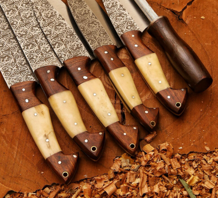 Venta al por mayor personalizado hecho a mano de alta calidad OEM/ODM servicio profesional estilo japonés cinco piezas ambidiestro acero al carbono Chef