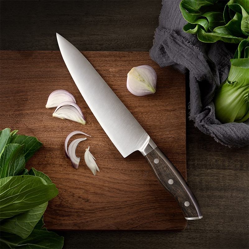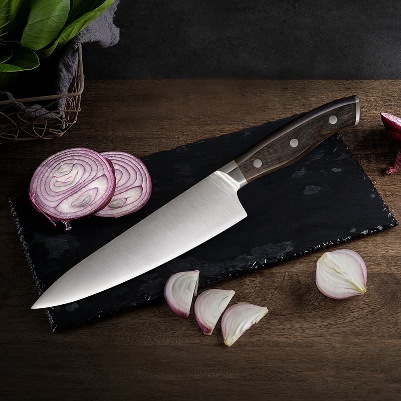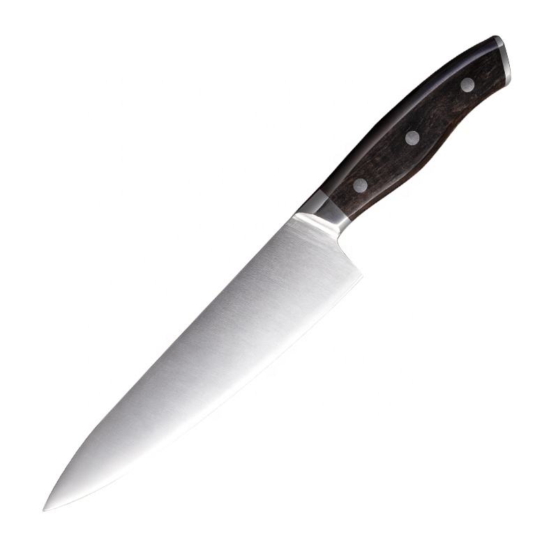 Venta al por mayor personalizado de alta calidad OEM ODM servicio Fix Blade Venta caliente de acero inoxidable cuchillos de cocina cuchillo Chef cuchillo con mango de madera