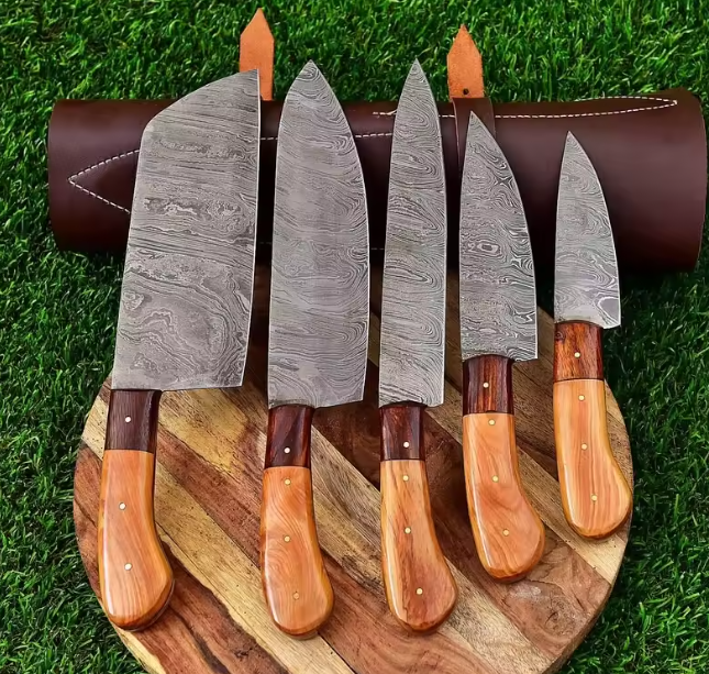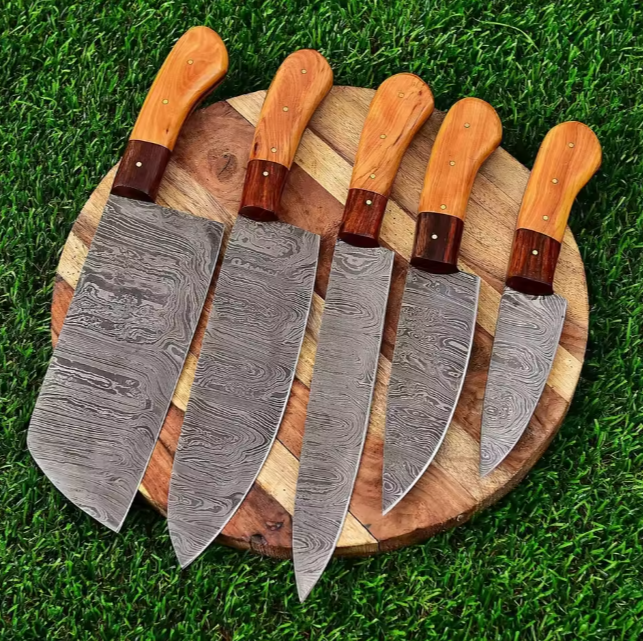 Juego de Cuchillos de Chef PRESTIGE BLADES de Cinco Piezas, Acero de Damasco Hecho a Mano de 67 Capas, Servicio OEM ODM de Alta Calidad Personalizado al por Mayor
