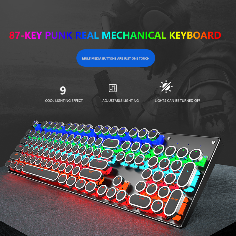 Teclado mecánico azul con cable de 104 teclas K550 Punk personalizado al por mayor, intercambio en caliente, con retroiluminación de 7-RGB, programable para juegos