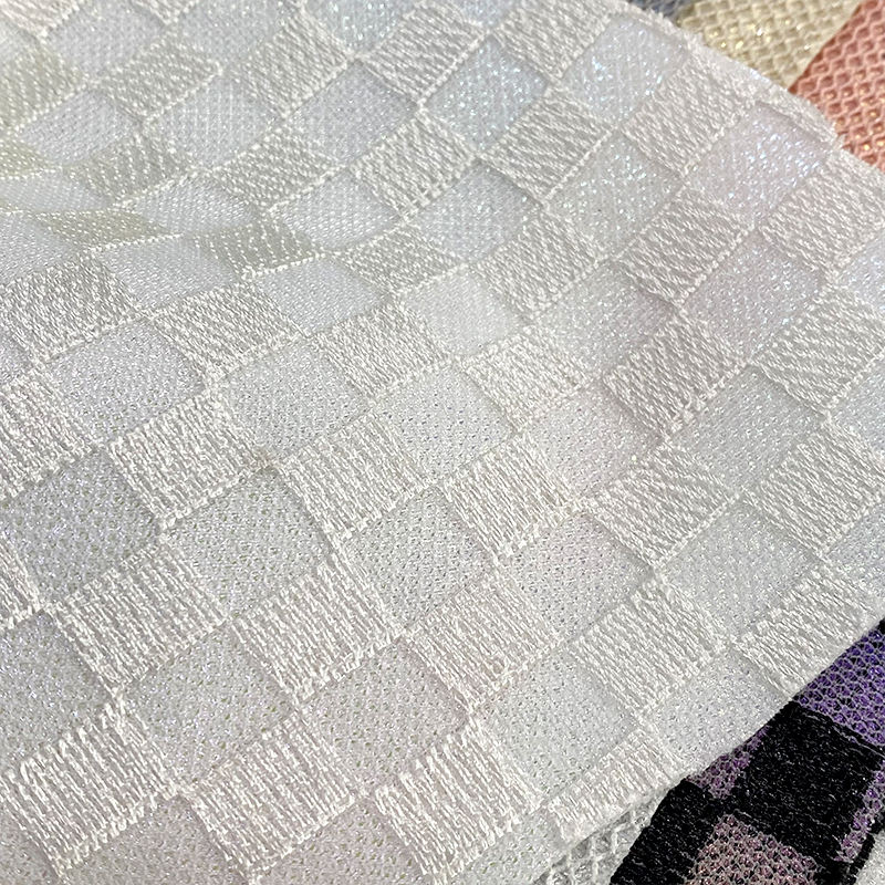 Tela a cuadros de malla de encaje tejido polipiel personalizado al por mayor tela de cuero sintético artificial en relieve para bolso/cartera