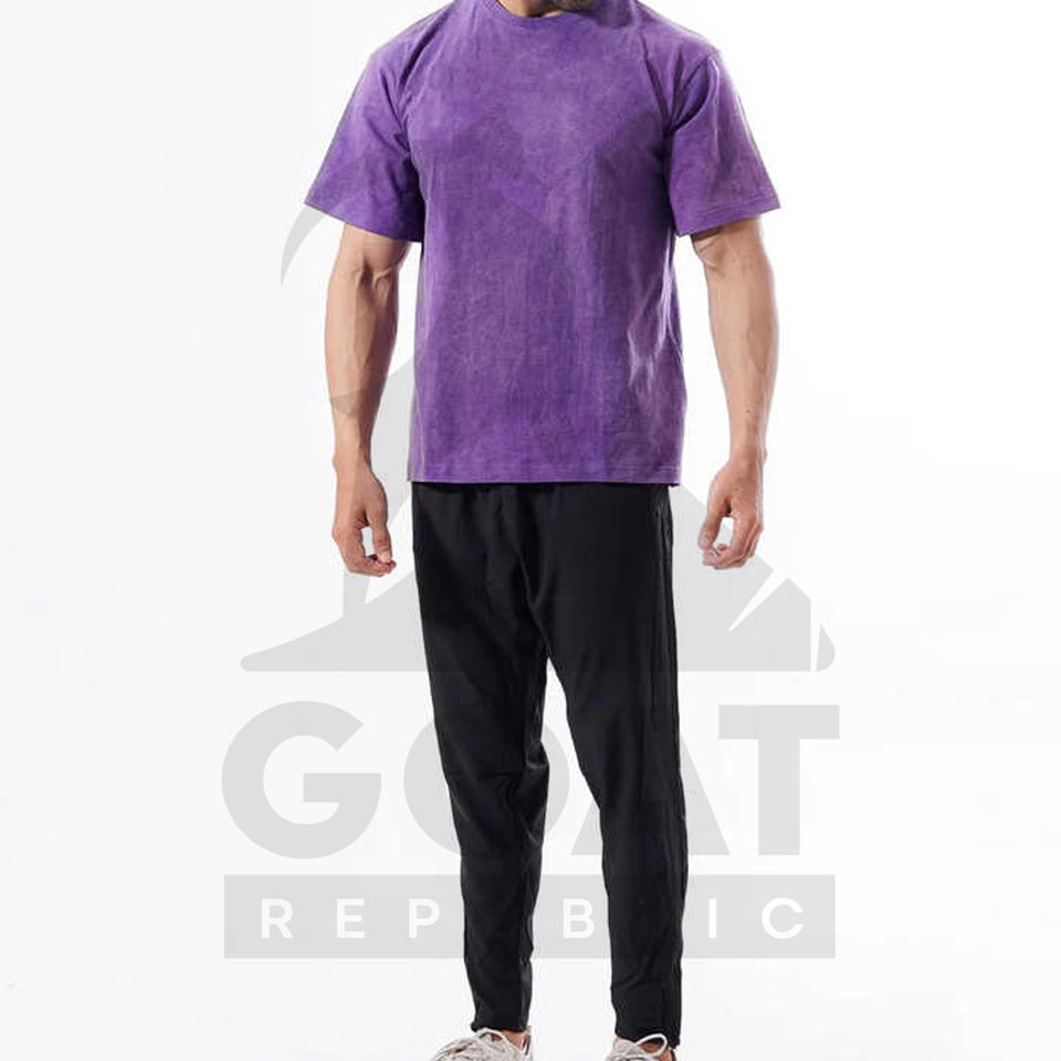 Camisetas con Lavado Ácido y Logotipo Personalizado al por Mayor para Hombre, Poliéster/Algodón, Manga Corta, Secado Rápido y Transpirable, Ropa Casual