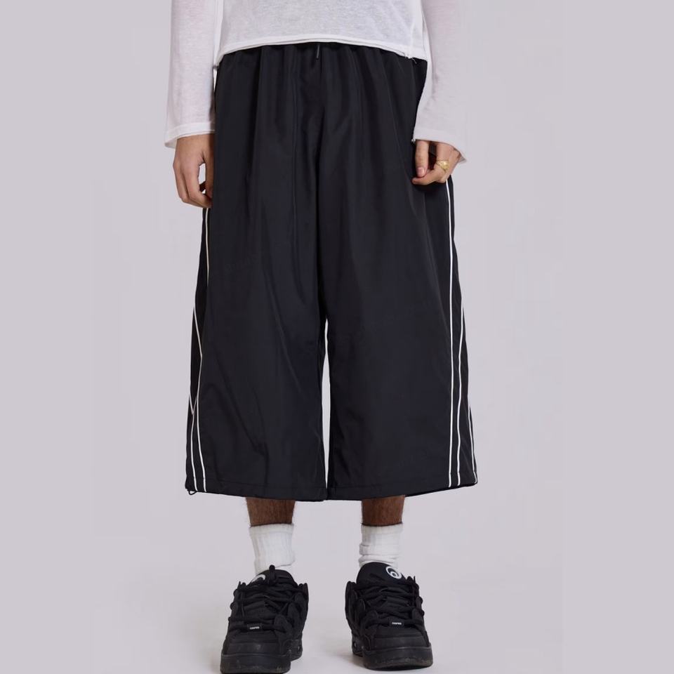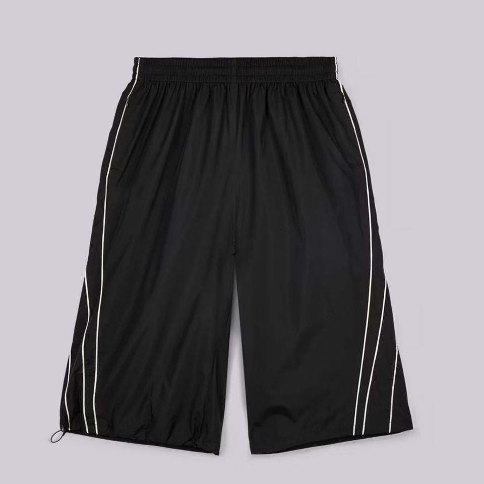 Pantalones Casuales al por Mayor con Logotipo Personalizado, Cintura con Cordón, 100% Poliéster, Diseño Liso con Ribete Lateral en Contraste, Largura 3/4