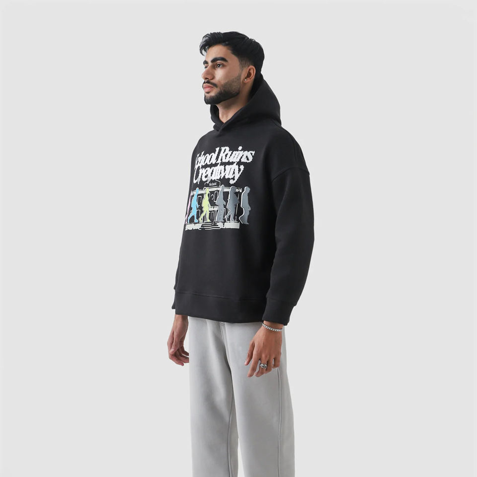 Sudadera con capucha con cordón de gran tamaño personalizada para hombre al por mayor, jersey de lana cepillada con estampado de hojaldre, sudaderas negras elegantes para invierno
