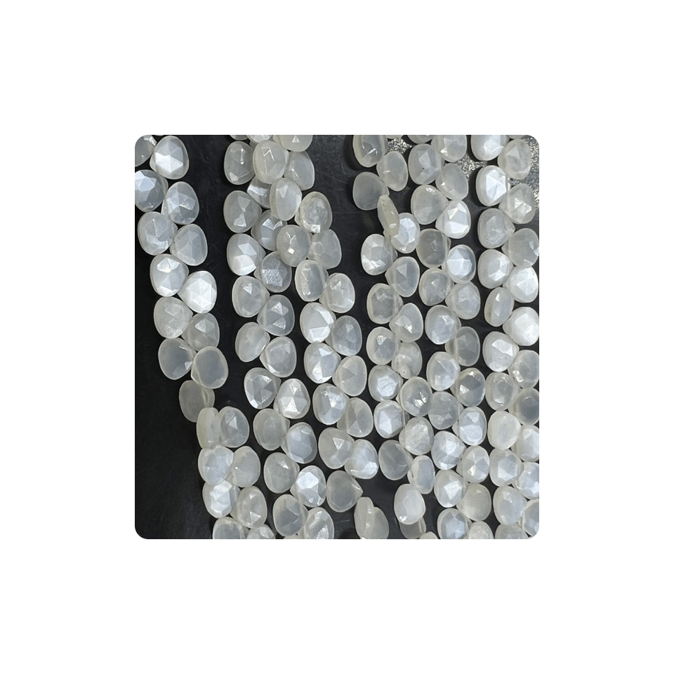 Cuentas de Briolette facetadas de piedra lunar blanca Natural personalizadas al por mayor, 7mm, aproximadamente 8 pulgadas, hebra de cristal negro, fabricación de joyas