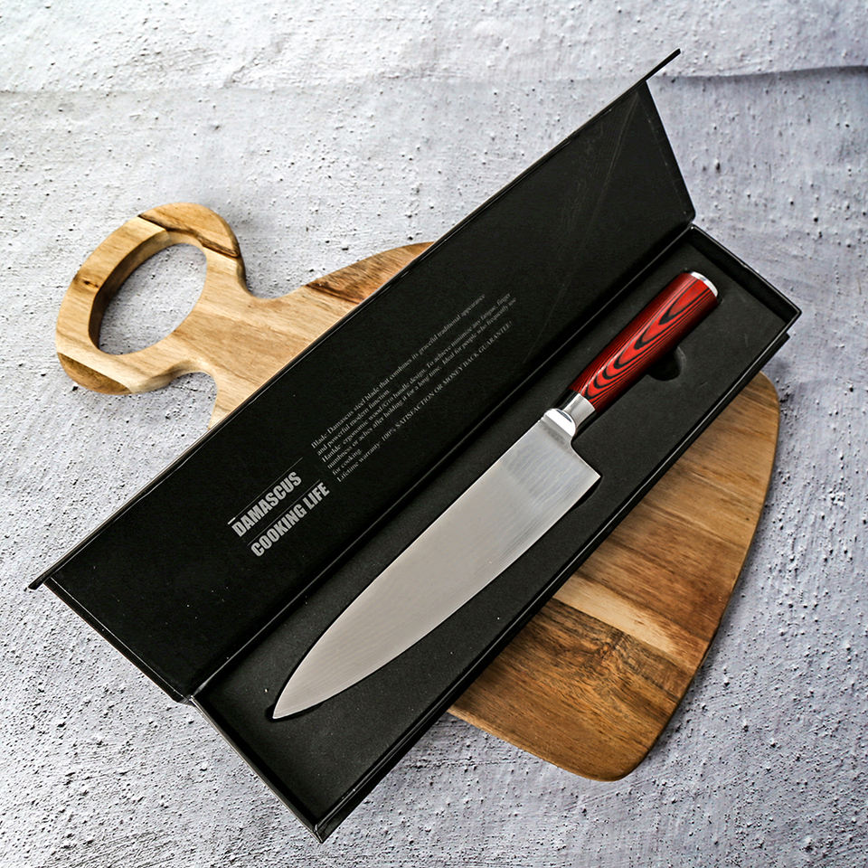 Venta al por mayor personalizado OEM ODM cubertería fábrica profesional Damasco Acero inoxidable cuchillo de cocina de alto carbono con mango de madera