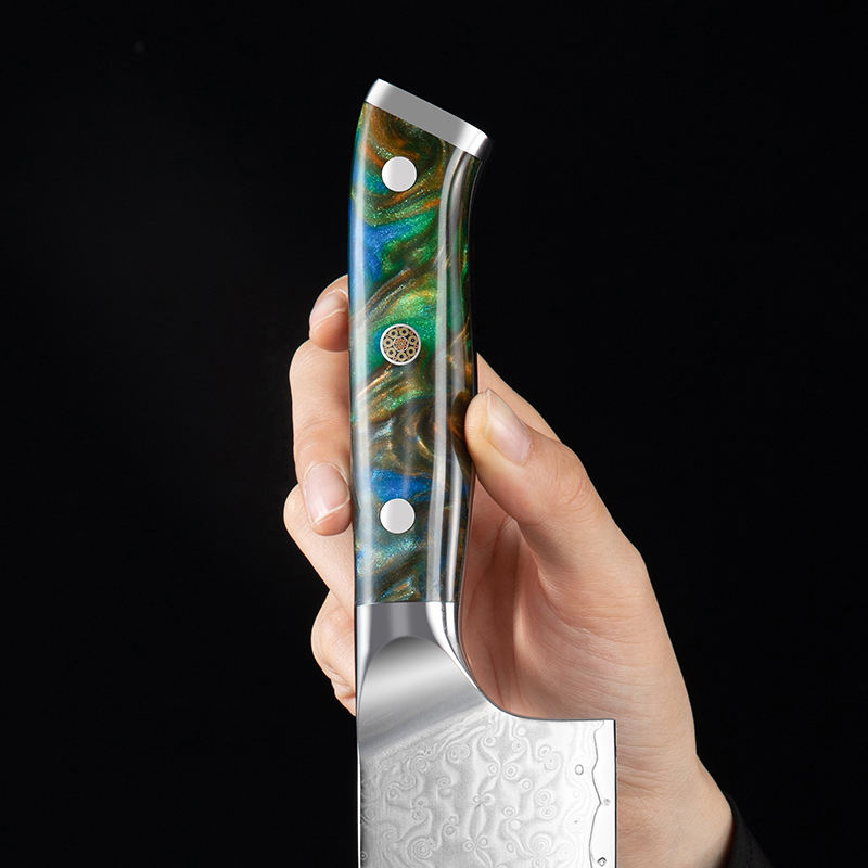 Cuchillo de Chef de acero inoxidable hecho a mano de fábrica de cubiertos OEM ODM personalizado al por mayor con mango de resina cuchillo de cocina de corte afilado