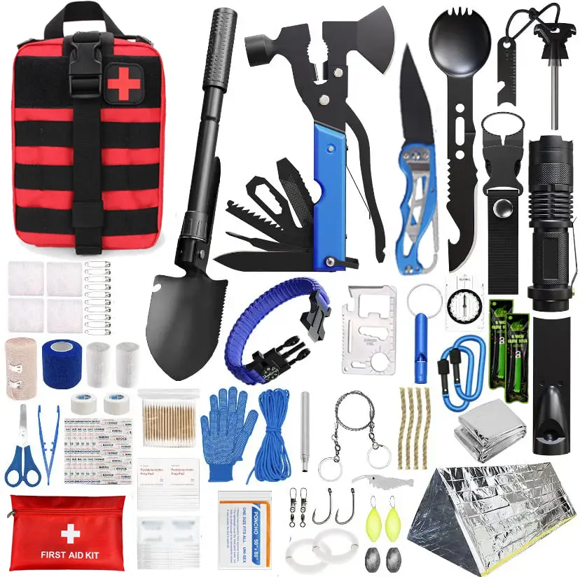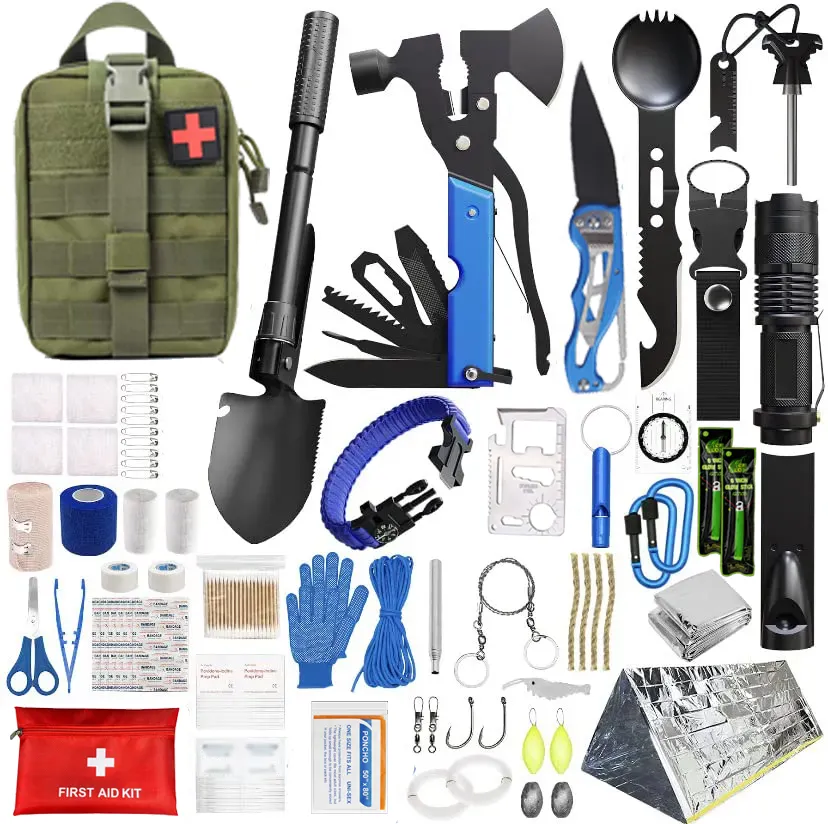 Venta al por mayor personalizado OEM y ODM resistente al agua Molle tamaño táctico bolsa médica Primeros Auxilios supervivencia Kit de supervivencia Machete Kit