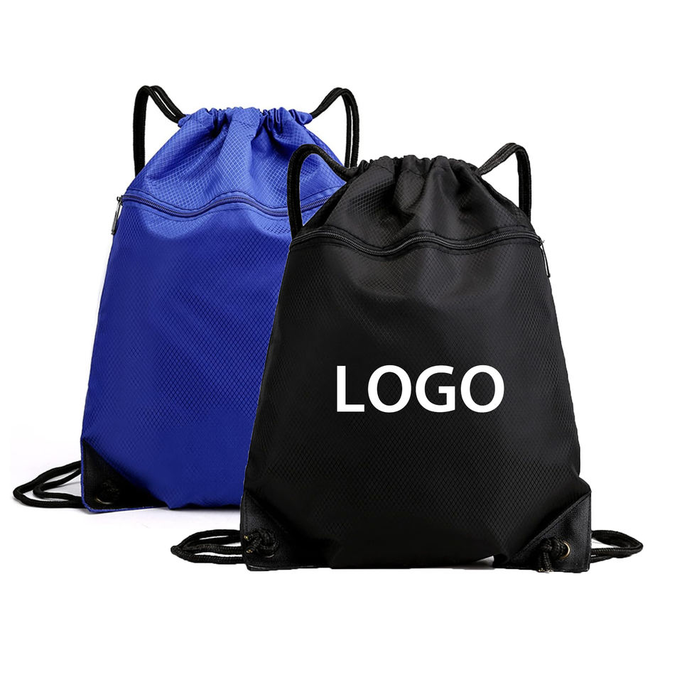 Mochila deportiva con cordón de nailon y poliéster personalizada al por mayor, Asa de cinta para tienda promocional, patrón de letras, bolsas con cordón