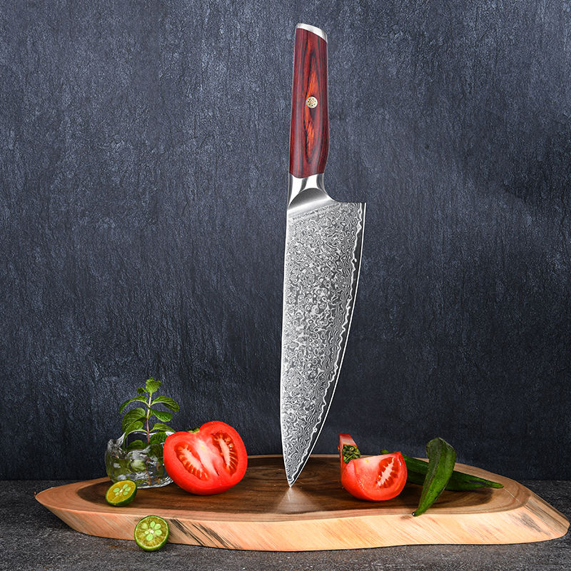 Venta al por mayor personalizado de calidad superior OEM ODM servicio de acero de Damasco hoja ultra afilada rebanadora cuchillo de cocina Chef de estilo japonés