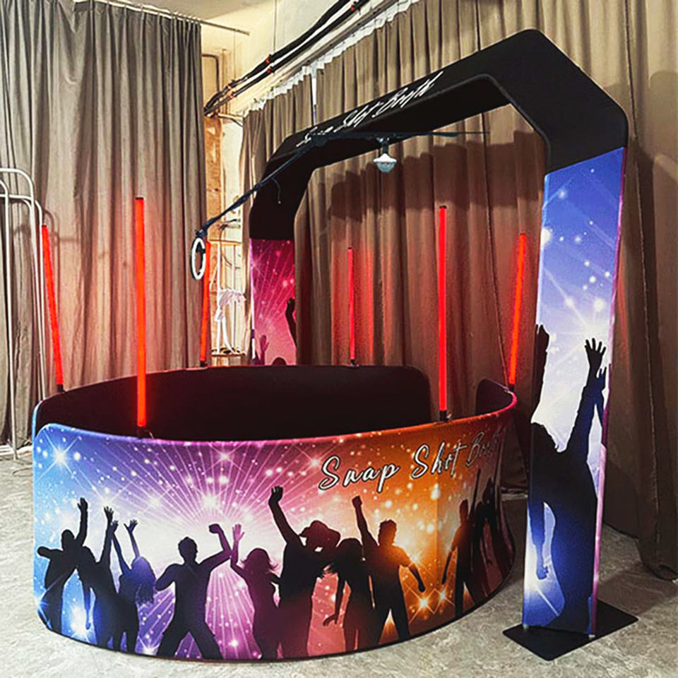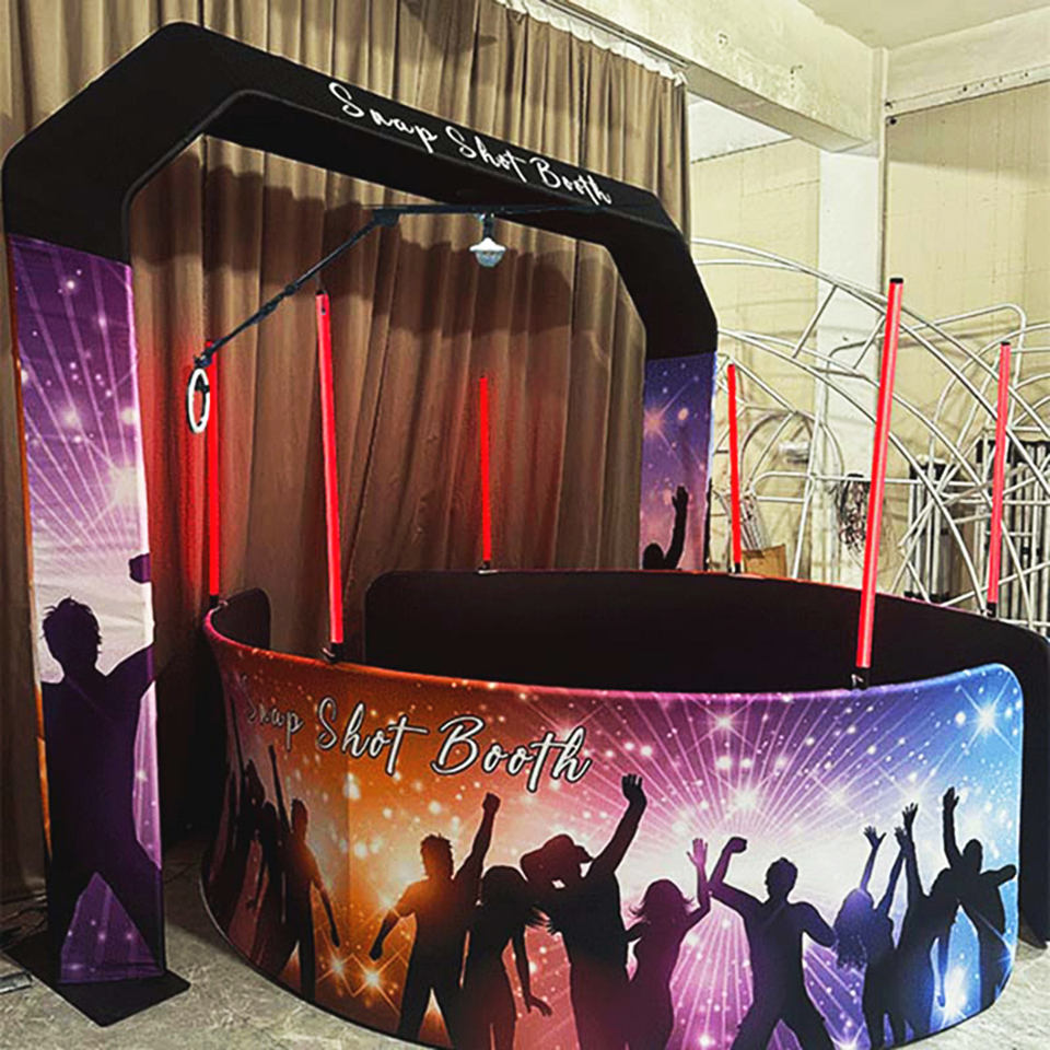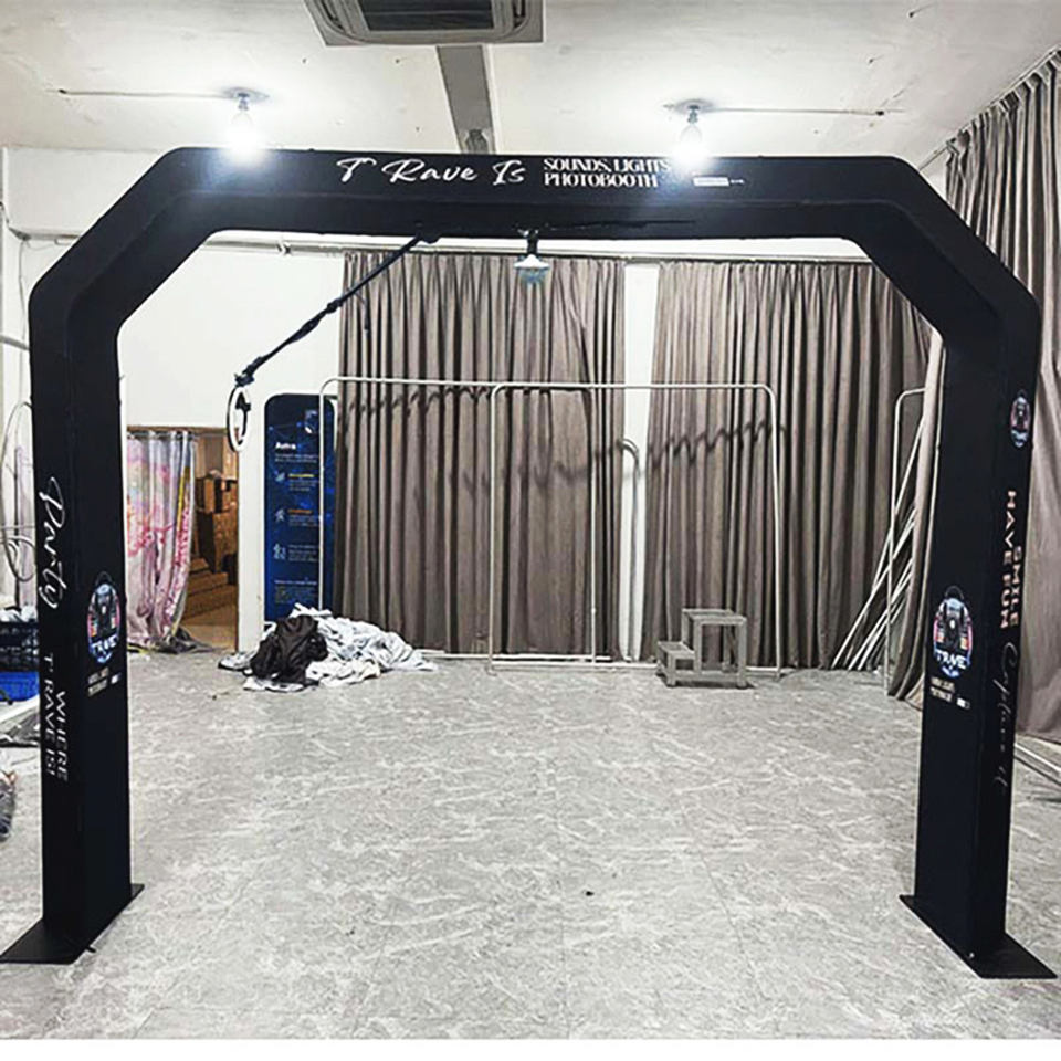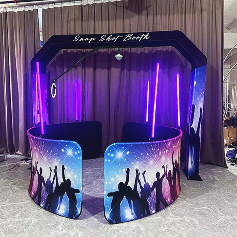 Cabina DE FOTOS superior RGB 360 grados personalizada al por mayor fondos de iluminación LED compatible con control remoto de aleación de aluminio y metal