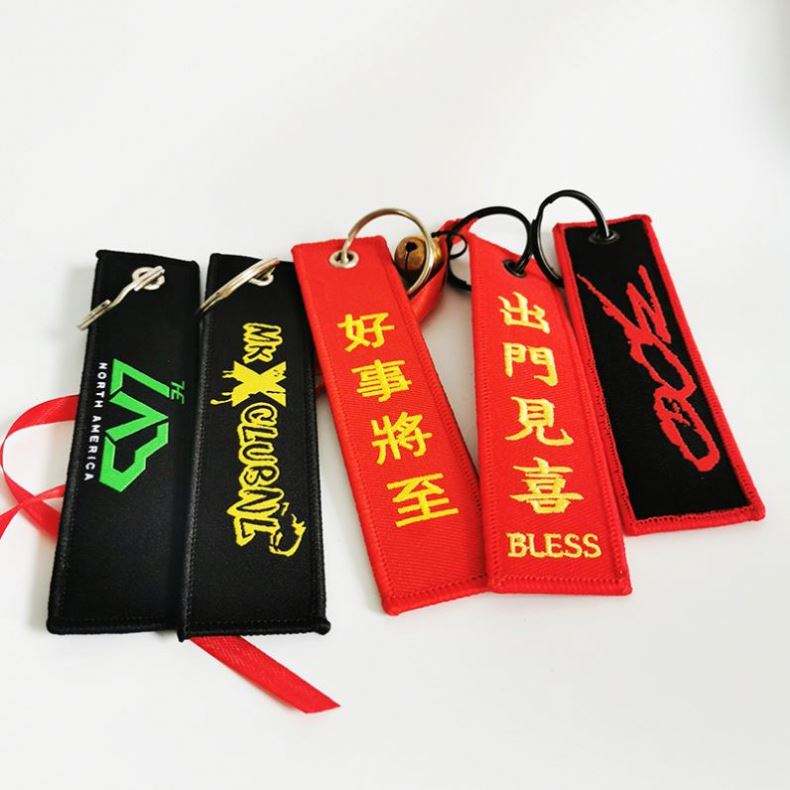 Llaveros personalizados al por mayor con etiqueta de equipaje removible para bordado, llaveros tejidos con logo para vuelos