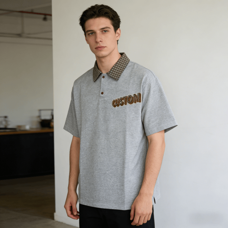 Camisetas Casuales de Gran Tamaño, Tejidas, con Rayas en Contraste, Retro, de Poliéster/Algodón, para Verano, 210g, Holgadas y Cortas, al por Mayor y Personalizadas