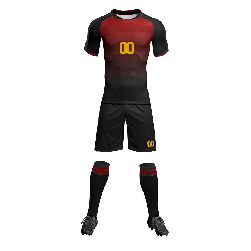 Jersey de fútbol amarillo y negro elegante personalizado al por mayor conjunto completo uniforme de fútbol OEM con servicio ropa de fútbol barata