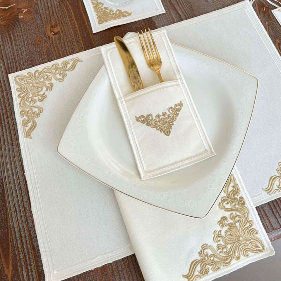 Nombre del Producto:Lencería de Mesa Bordada en Oro Real