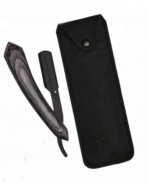 Al por mayor: Navaja de afeitar recta de acero al carbono para barbería, afilada, estilo alemán, con mango de madera