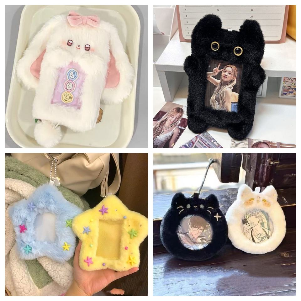 Venta al por mayor lindo animal pequeña tarjeta de felpa titular de la tarjeta amor frijol pantalla cachorro colgante coreano campus foto comida tarjeta