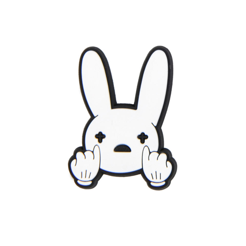 Broche de metal esmaltado de Bad Bunny, diseño adorable de conejo malvado con corazón rojo para solapa.