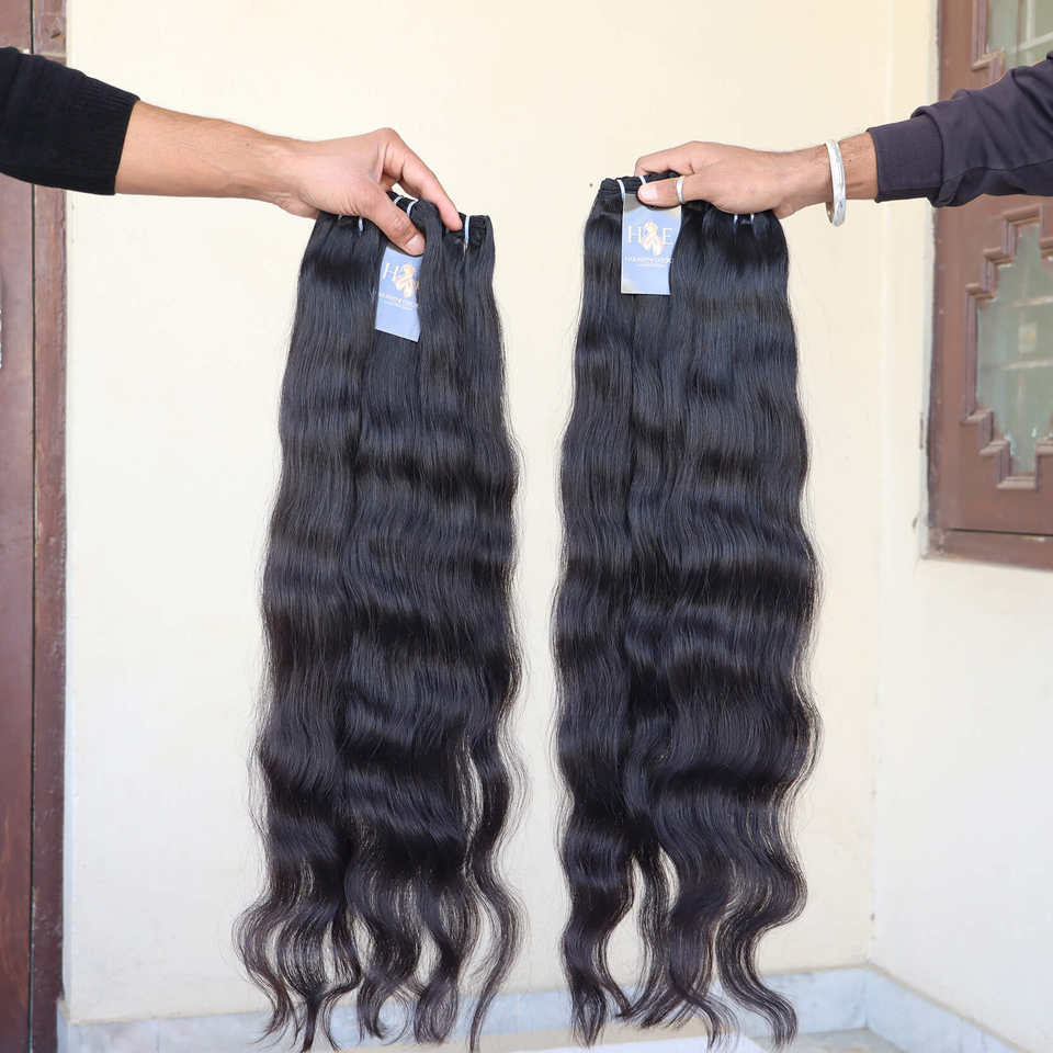 Venta al por mayor de cutícula alineada cruda Virgen sin procesar doble dibujado indio templo pelo tejido mechones onda humana y estilos de rizos