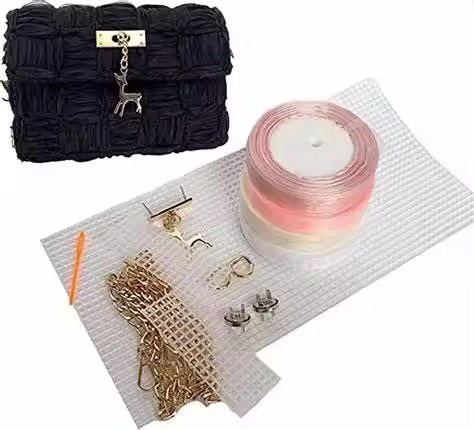 Kit de proyectos de bordado artesanal DIY al por mayor, monedero hecho a mano, costura, materiales de lona de malla, bolsos de punto de ganchillo, bolsos cruzados