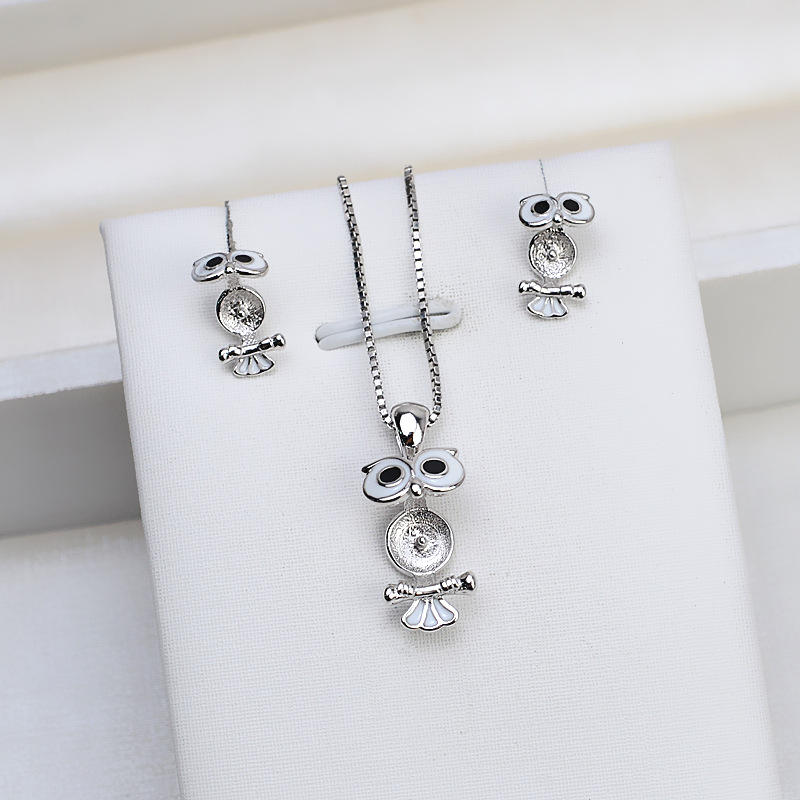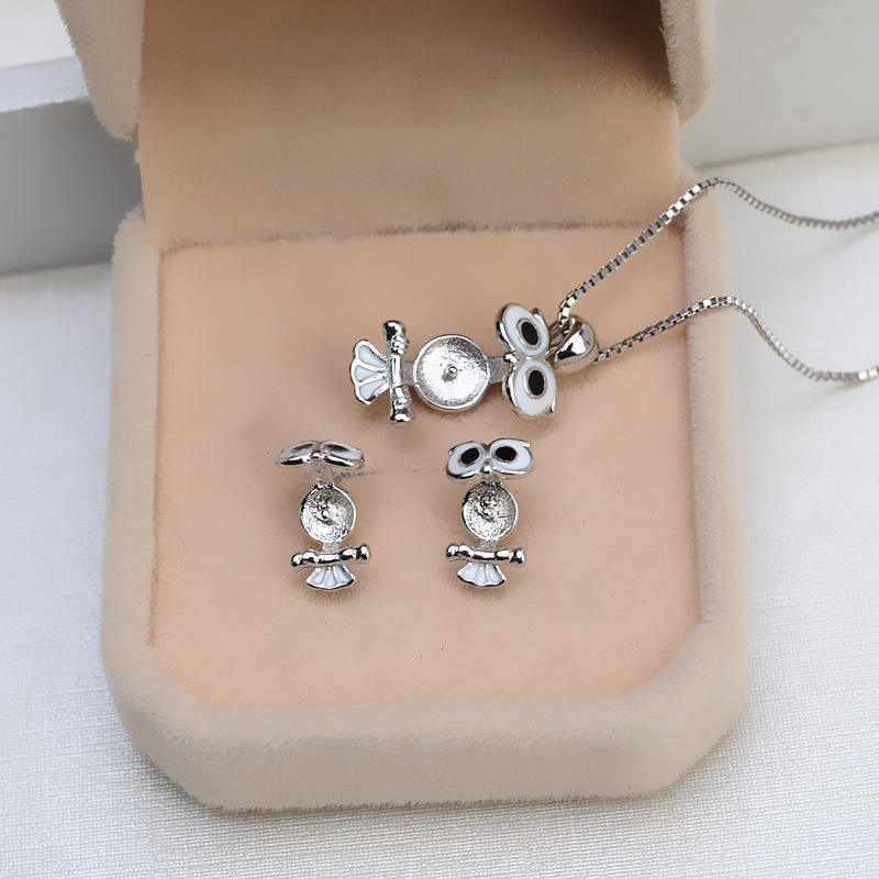 Juego de Pendientes y Colgante de Plata S925 con Búho y Resina Epoxi, Joyería Fina para Mujer con Soporte para Perla Vacío 1329