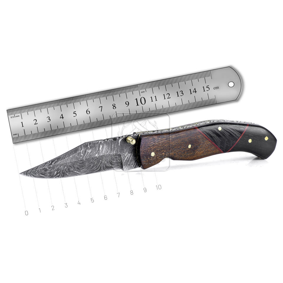 Navaja de bolsillo plegable hecha a mano de acero damasco al por mayor, mango de madera de ébano exótico para uso táctico Bushcraft EDC, venta al por mayor