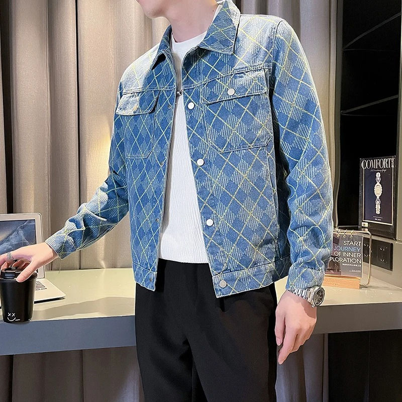 Venta al por mayor chaquetas de mezclilla para los hombres de primavera y otoño Casual abrigos de moda de los hombres de solapa ropa de calle Social Tops para los hombres