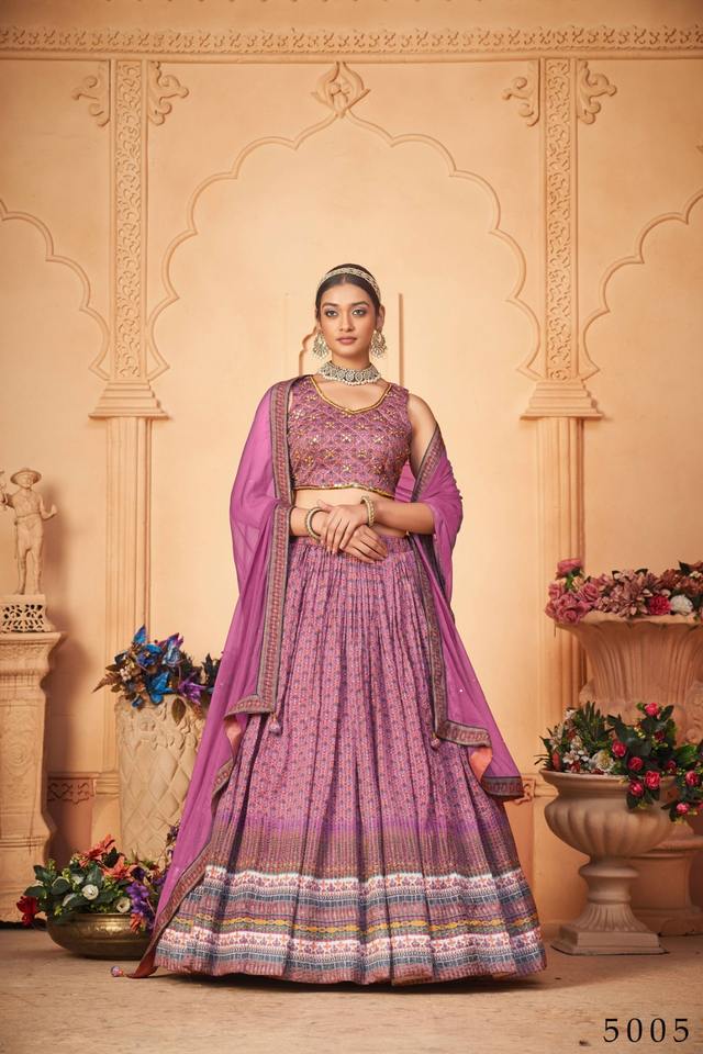 Detalles del embalaje:Maravillosas lentejuelas de cuatro colores y patrón de flores elegantes Lehenga choli en Georgette