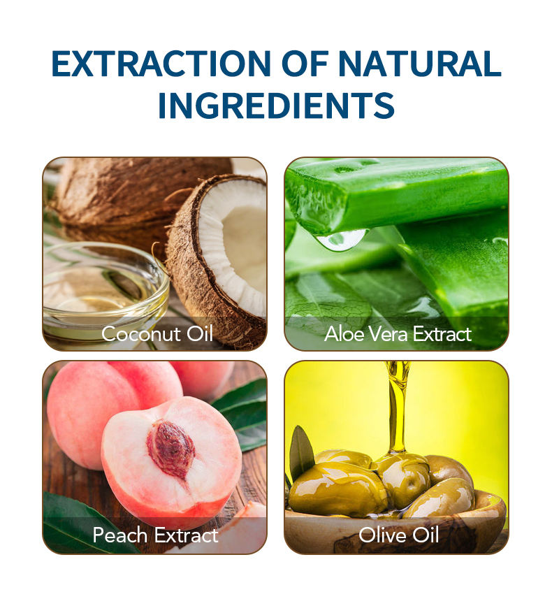 Herbario, Orgánico, Vegano, Libre de crueldad, Libre de sulfato, Libre de parabenos, Libre de silicona, Peach Fruits Extract, Coconut OilIngrediente