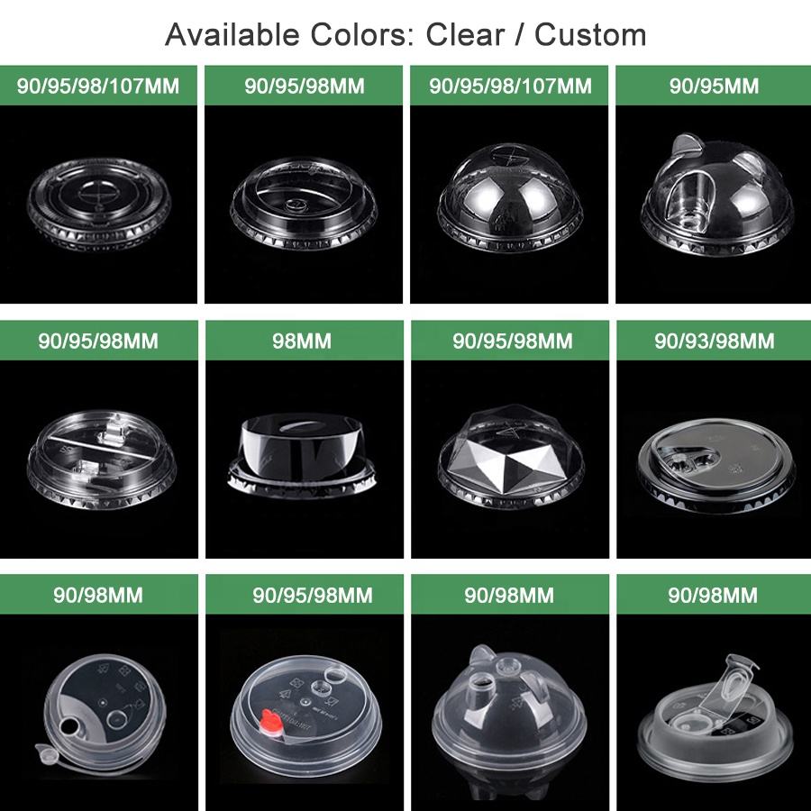 Vasos Desechables de PET para Bebidas al por Mayor, para Té con Leche, Jugo, Café y Helado, 90 mm de Diámetro, Transparentes, de Pared Simple, con Logotipo Personalizado