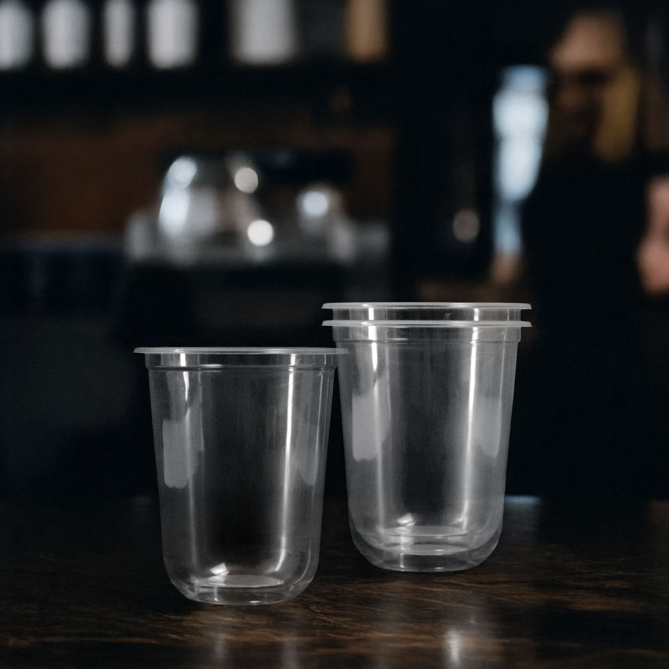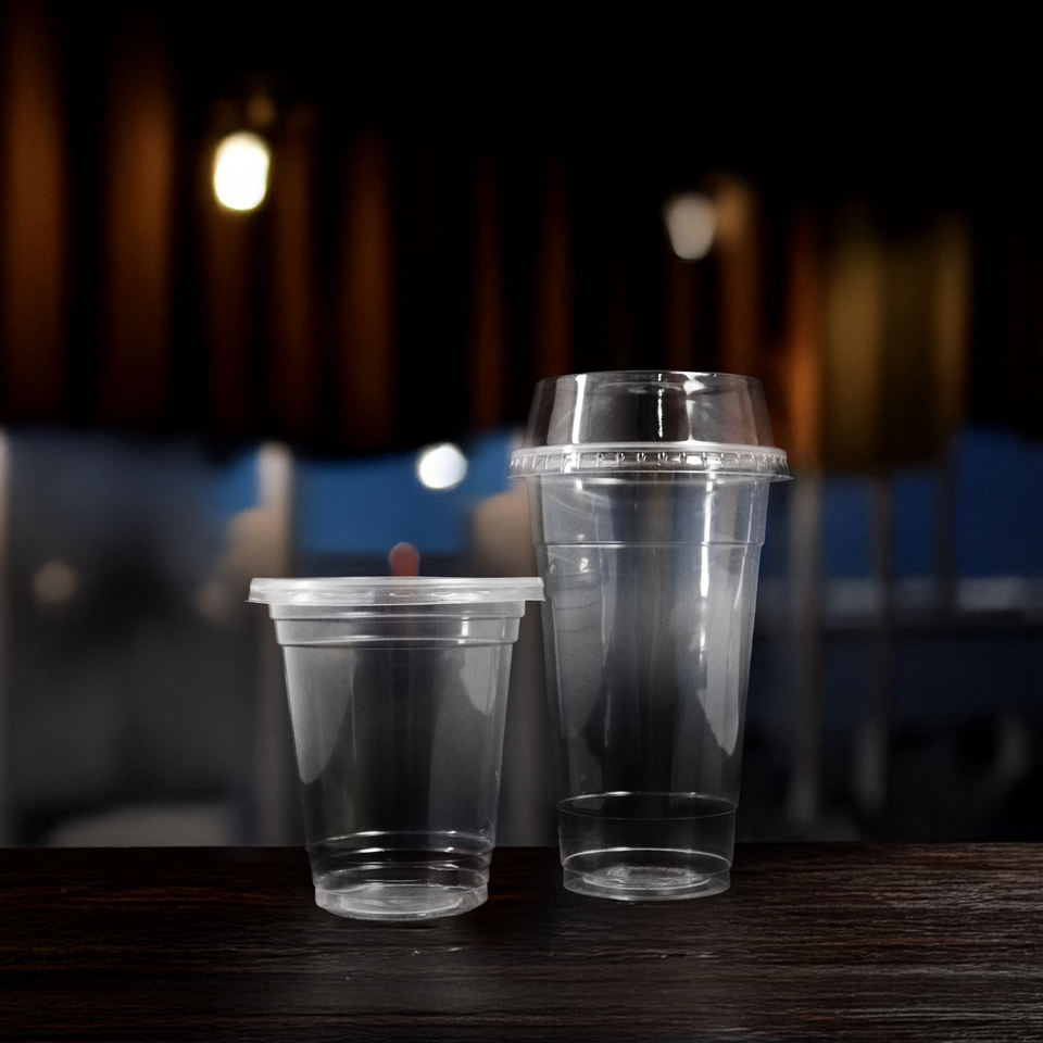 Venta al por mayor de vasos desechables de plástico de pared simple con tapas de 95mm de diámetro 16/20/24 oz de capacidad para bebidas frías y postres