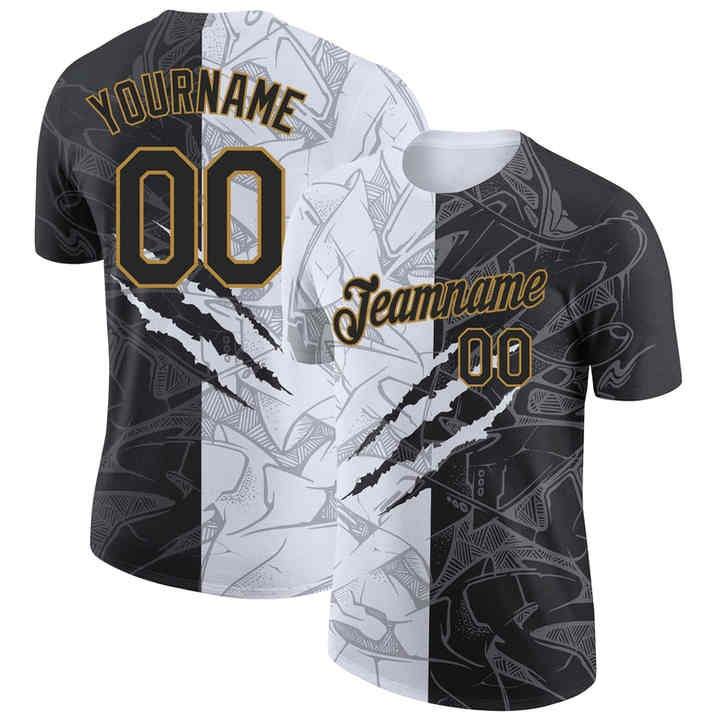 Venta al por mayor Dropship 3D Sports Pullover Sudadera con capucha Custom Black Vegas Gold-White Performance T-Shirt