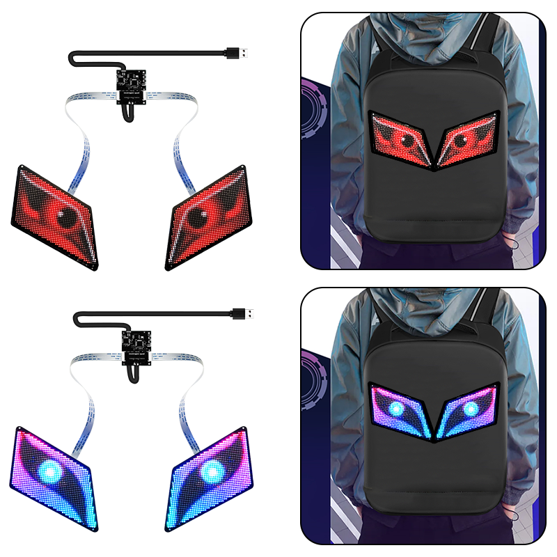 Palabra clave:Pantalla de mochila, ojos LED, Ojos de Ángel led