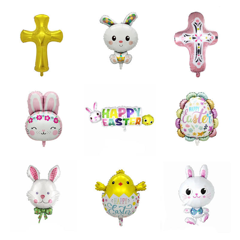 Globo redondo de película de aluminio con forma de cruz de dibujos animados de Pascua al por mayor para decoraciones de fiesta de cumpleaños y bautismo de bebé