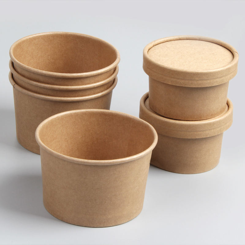 Tazones de Papel para Llevar con Logotipo Personalizado Ecológico al por Mayor, Vasos de Papel para Helado y Yogur de Grado Alimenticio con Tapa