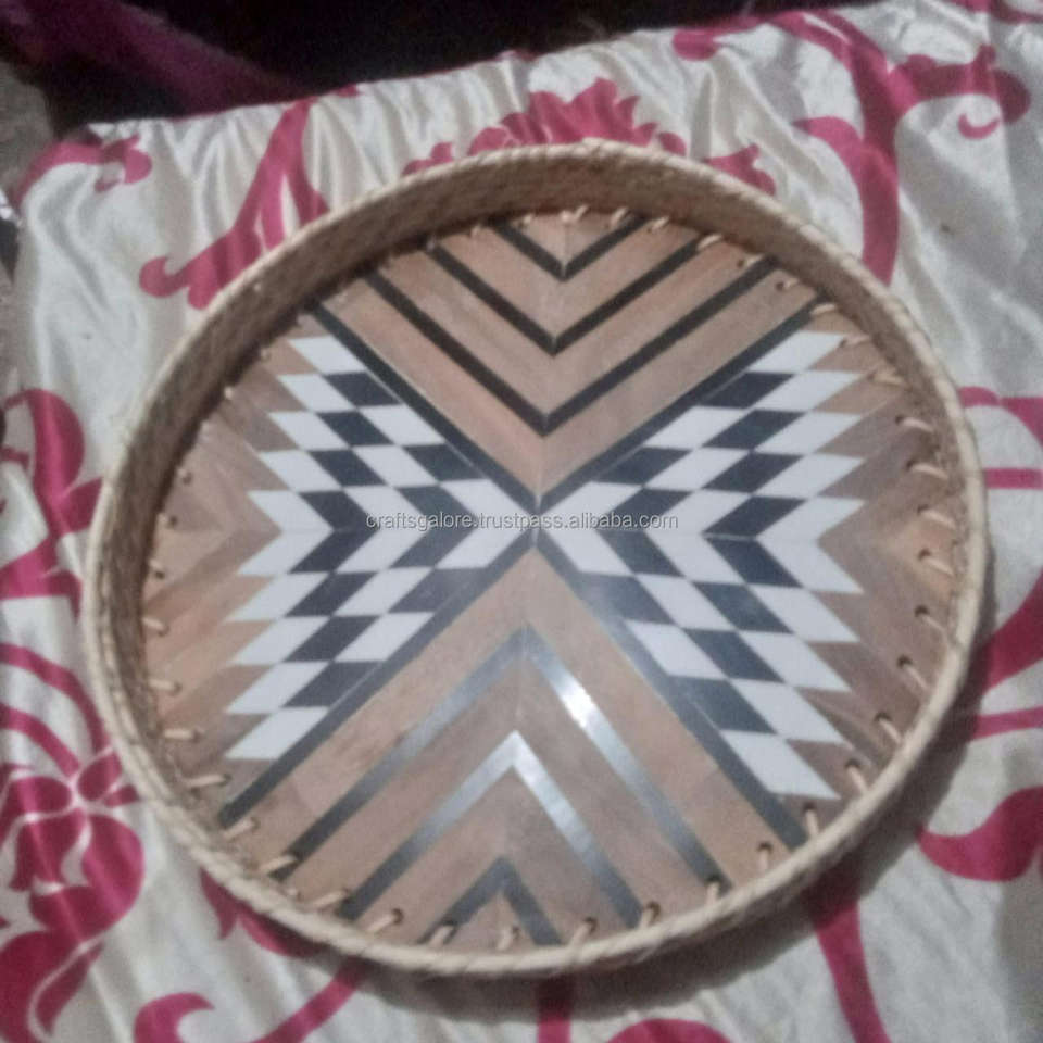 Bandeja de Servicio Tejida a Mano de Ratán Ecológica Personalizada al por Mayor con Incrustaciones de Resina Esmaltada Directamente de la India Suministro al por Mayor