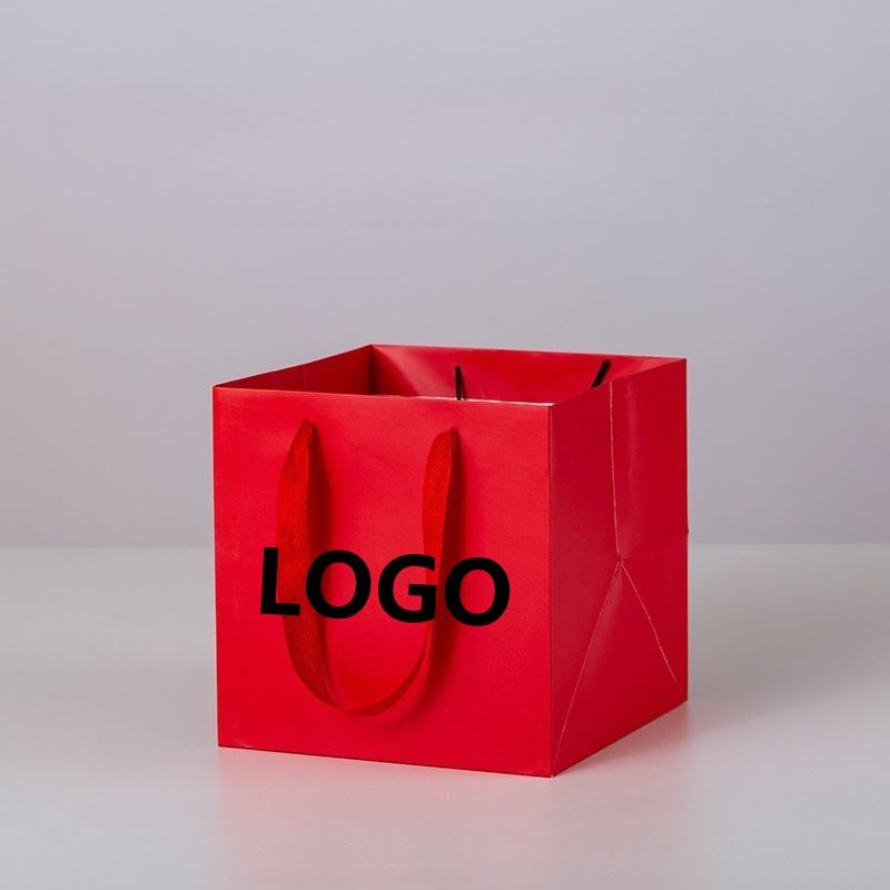 Bolsas de regalo Kraft cuadradas ecológicas al por mayor, exhibición de logotipo personalizado con asa de moda sencilla para comida artesanal, logotipo personalizado al por mayor