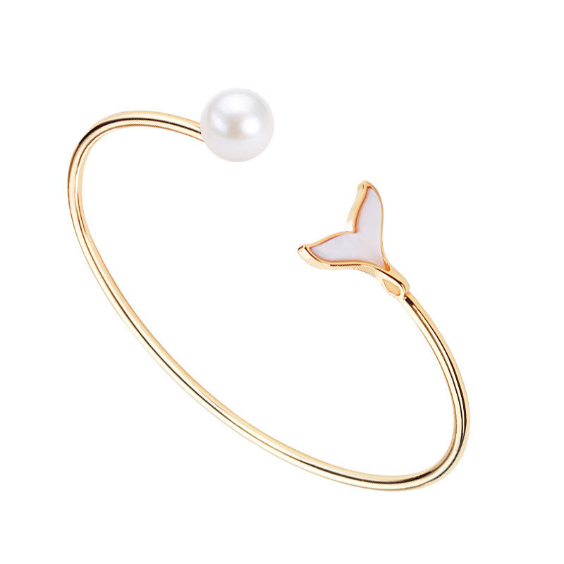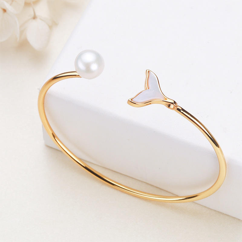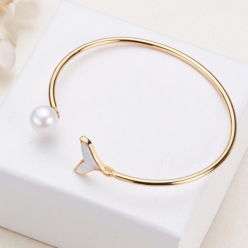 Pulsera de Perlas de Agua Dulce con Cola de Pez Edison, Chapada en Cobre y Oro, Selección de Perlas Vivas, Pulseras y Brazaletes
